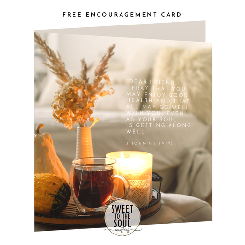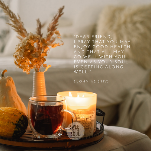 “Dear friend, I pray that you may enjoy good health and that all may go well with you, even as your soul is getting along well.” 3 John 1:2 (NIV)